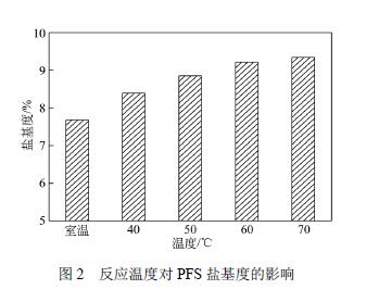 由上可知,反應(yīng)溫度在一定程度上可提高PFS 的鹽基度,而不影響其他性能。