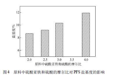 綜上可得,提高硫酸亞鐵和硫酸的摩爾比可以 提高PFS 鹽基度,同時(shí)不影響其他性能。
